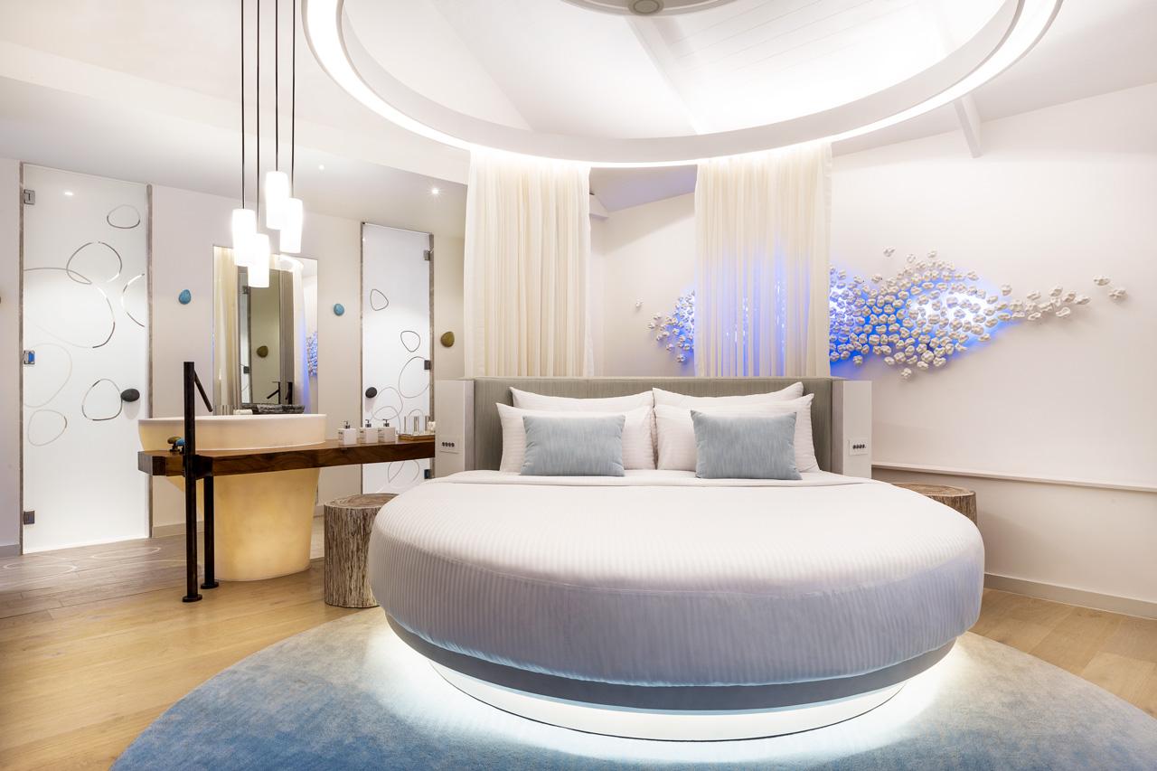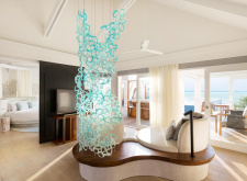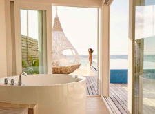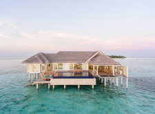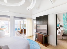 220 м.кв, просторные виллы над водой с собственным бассейном, спальня, отдельная гостиная со стеклянным полом, джакузи, вид на восход, прямой спуск к лагуне; максимальное размещение 2 взр.