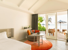95 м.кв, береговые виллы с видом на океан и прямым выходом к пляжу и лагуне, расположены по обе стороны острова; максимальное размещение 3 взр или 2 взр+2 подростка/ребенка